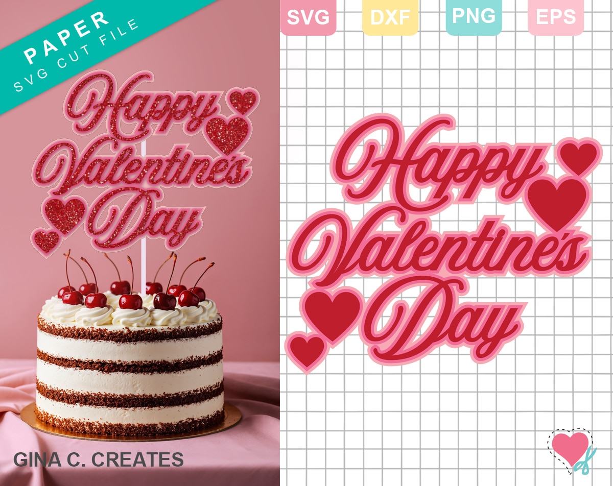 Happy Valentine’s Day Cake Topper SVG File made to use with Cardstock!